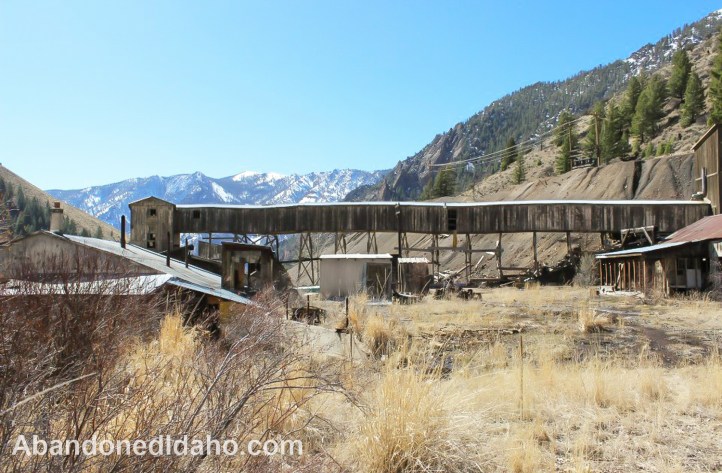 The tall building is the mill where the chunks of ore were processed into concentrate. By 1981 this mill had the capacity to process 250 tons of ore per day.